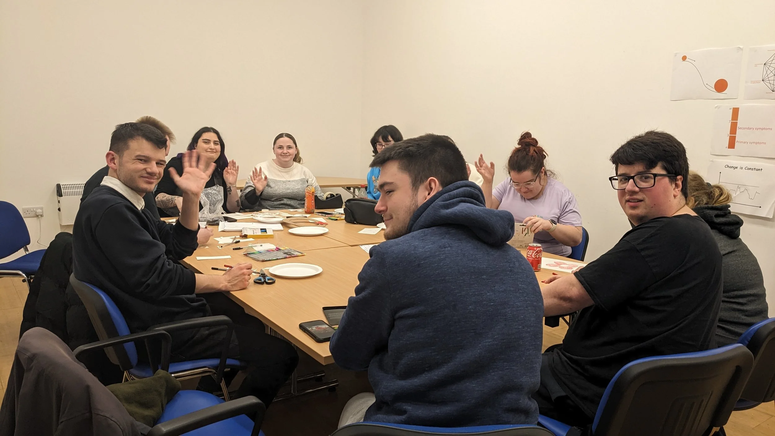 A craft group taking place at Your Voice running in 8 week blocks. On the eighth week the group has an art exhibition to showcase their work.